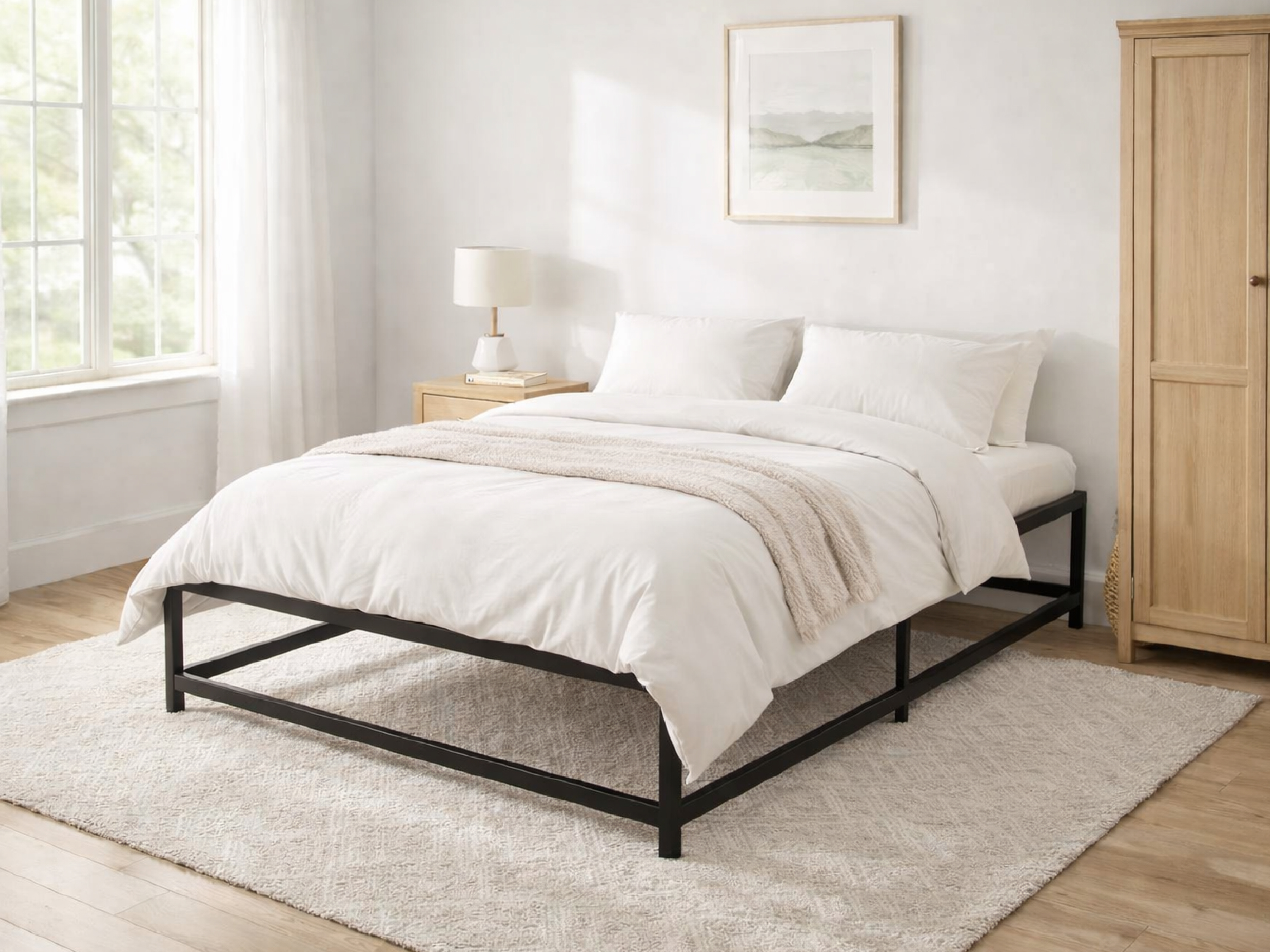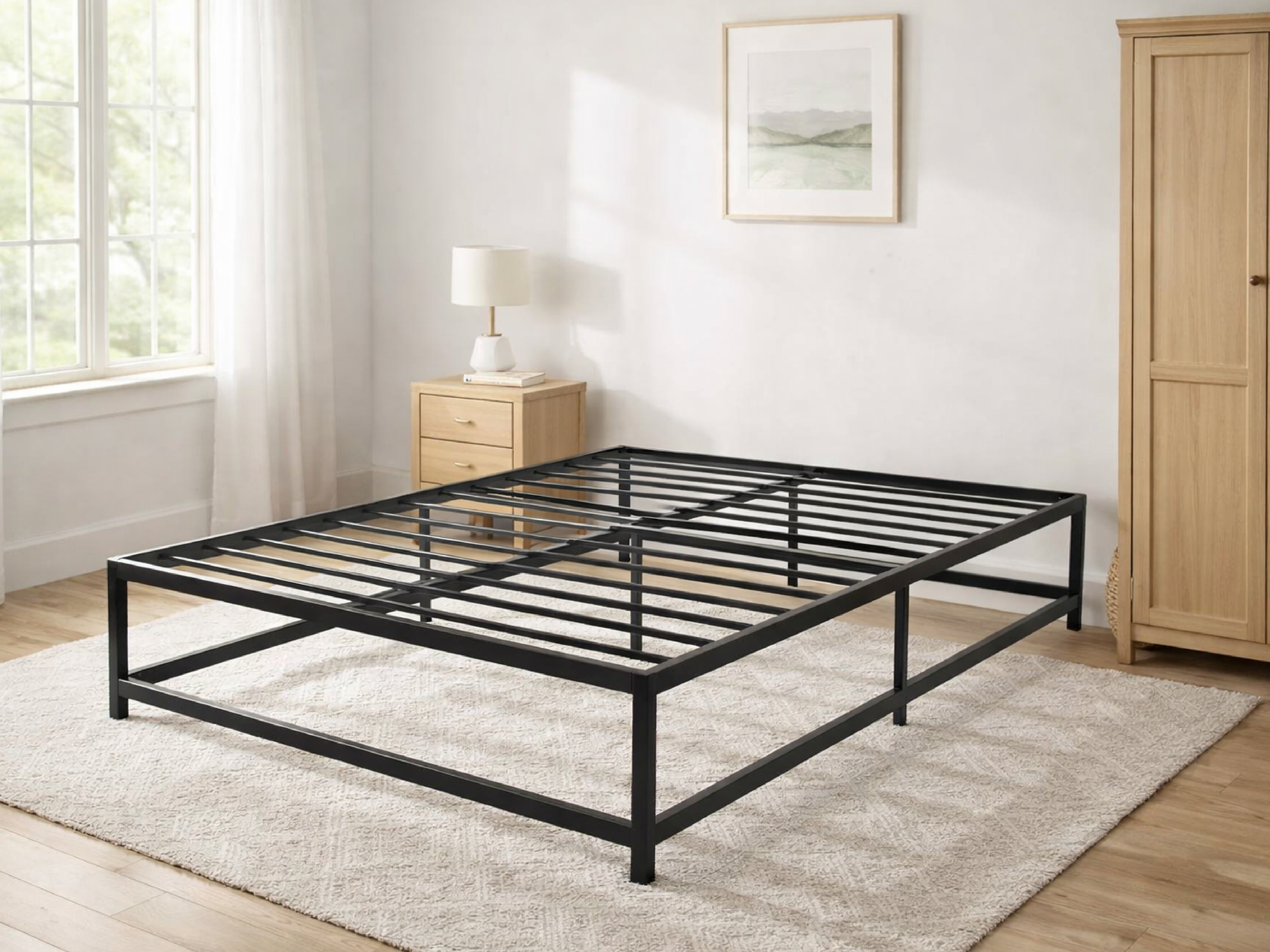 Our Dublin Bed Frame combines modern design with practical functionality. The sturdy metal slats provide reliable support for your mattress, ensuring optimal comfort and extending its lifespan. Its sleek and minimalist design makes it a versatile addition to any bedroom decor.
