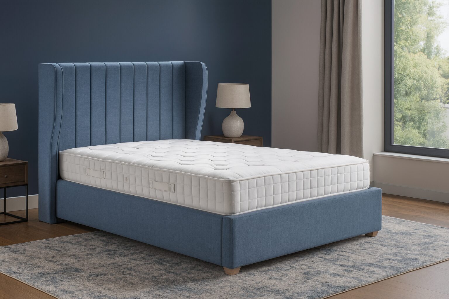 Parker Bed Frame – P Shaped Winged Headboard with Vertical Piping
